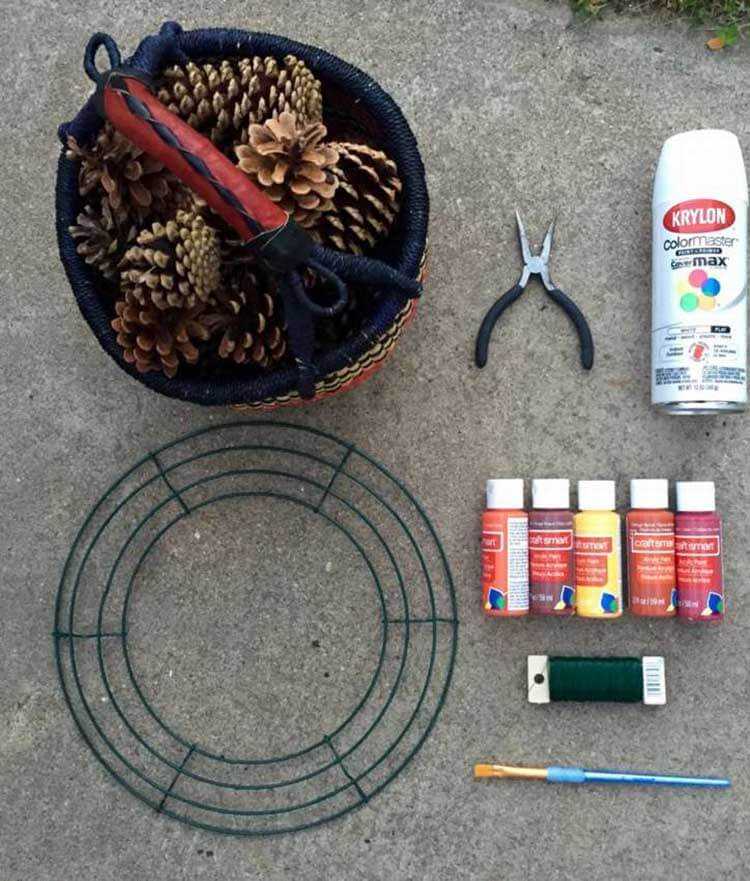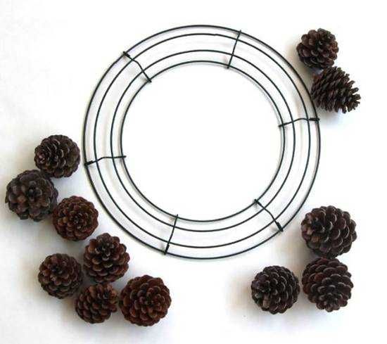 Чтобы сотворить венок из шишек своими руками, приготовьте: