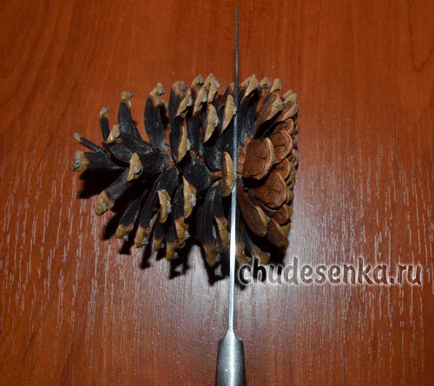 Для туловища нам потребуется большая шишка. Для головы лучше использовать шишку поменьше и немного приплюснутую.