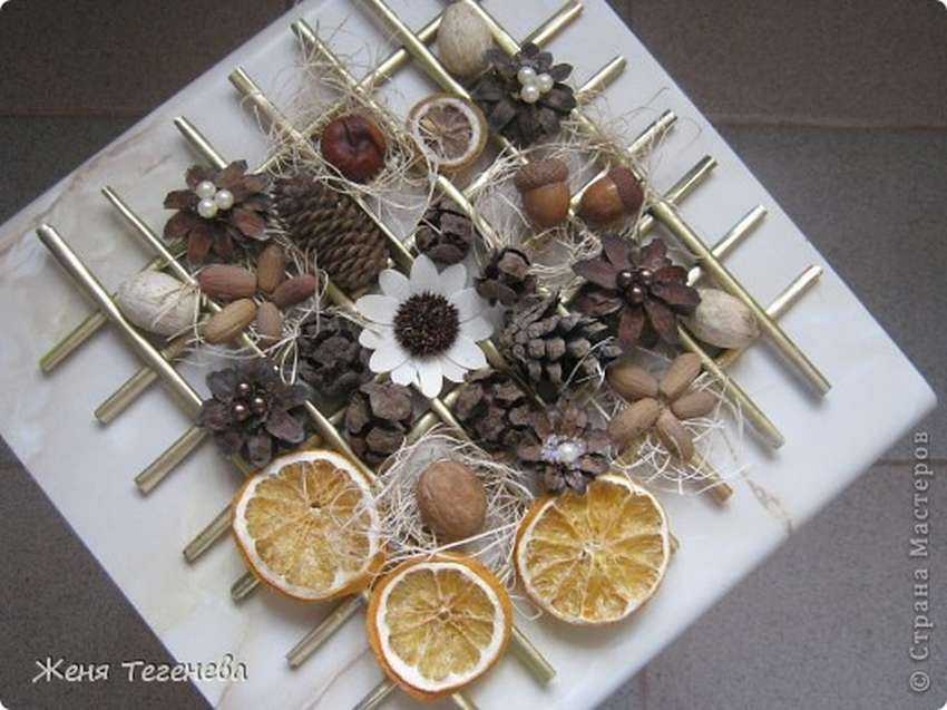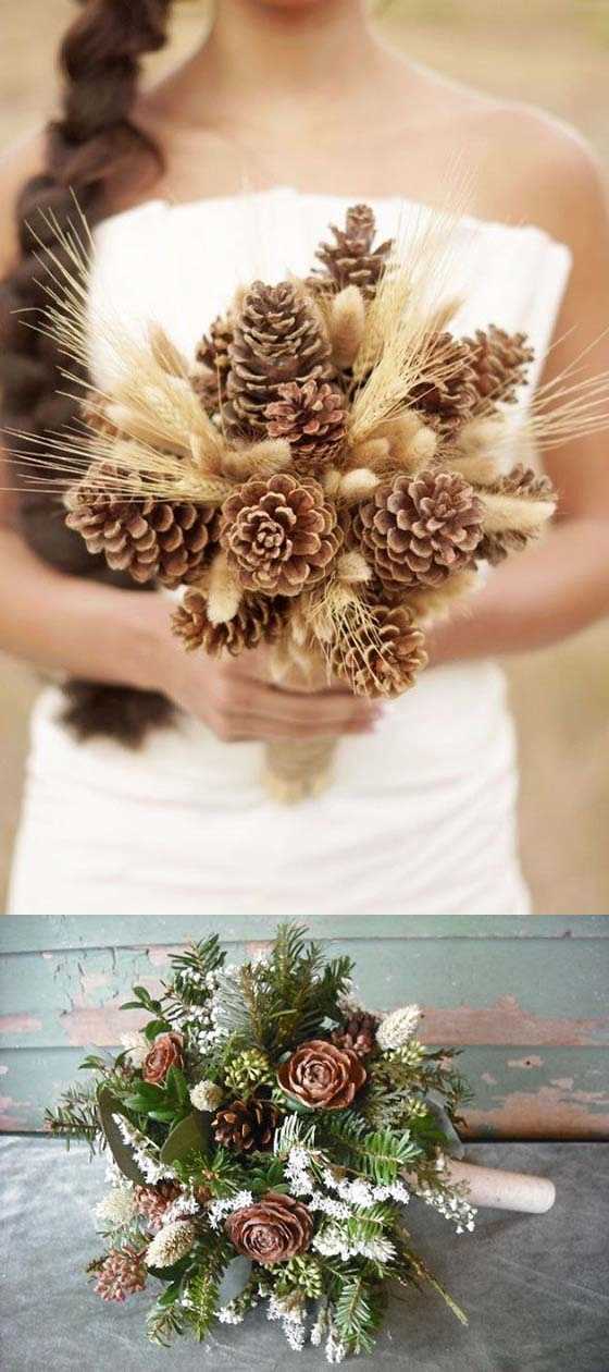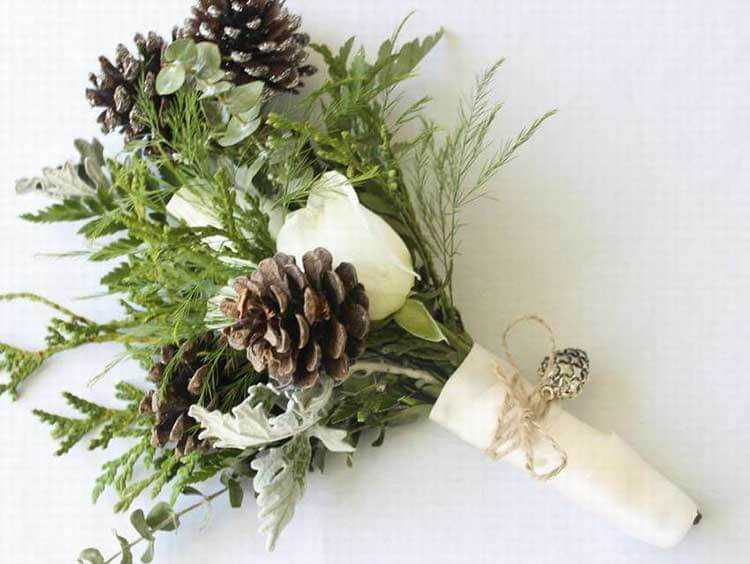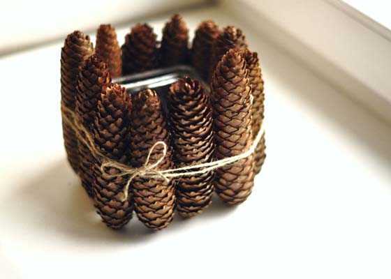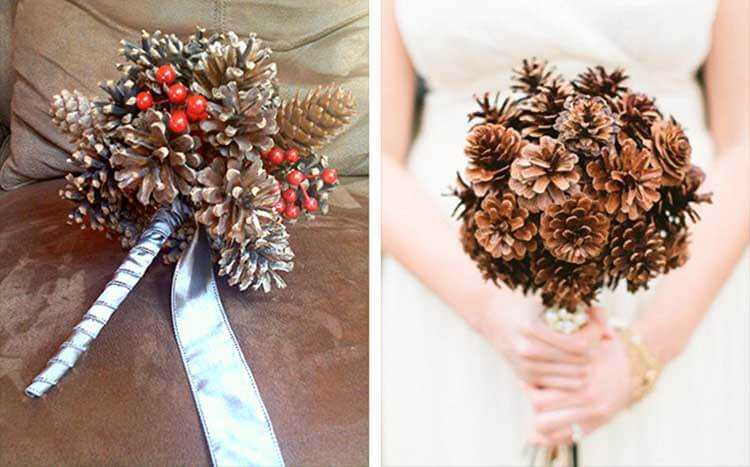 Верхушки шишек можно оставить заостренными, — так их легче втыкать, создавая букет, либо воспользоваться кусачками и отрезать лишнее (тогда шишки можно даже приклеить, создавая панно)