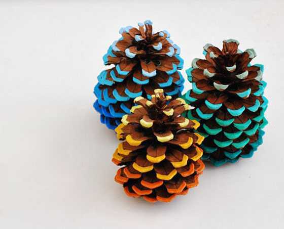 Когда шишки подсохнут, можете брать цветные краски и проявлять фантазию