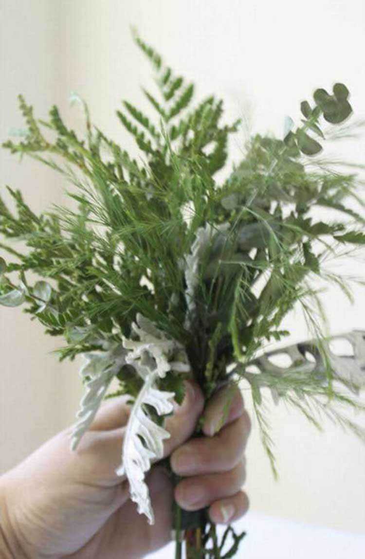 Получится более однотонный венок, слегка разбавленный яркими акцентами в виде листиков.