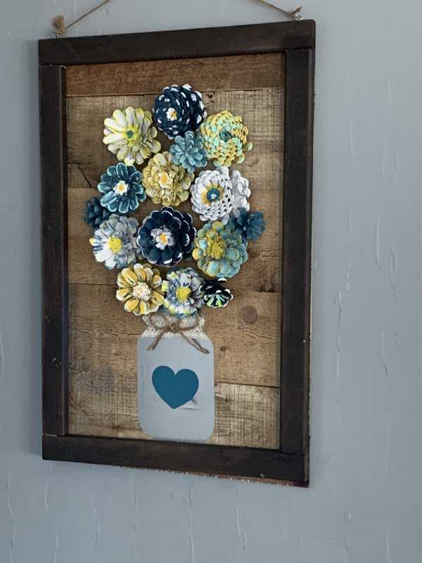 Приделав к каждому «цветку» – шишке стебель с листиком, наклеивайте готовые цветы на бумажную или картонную основу.