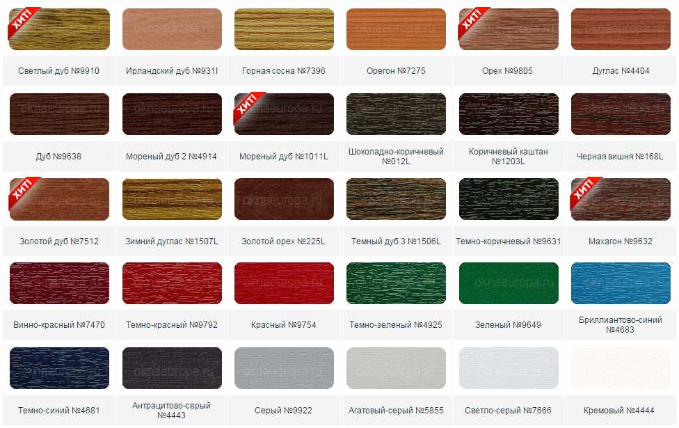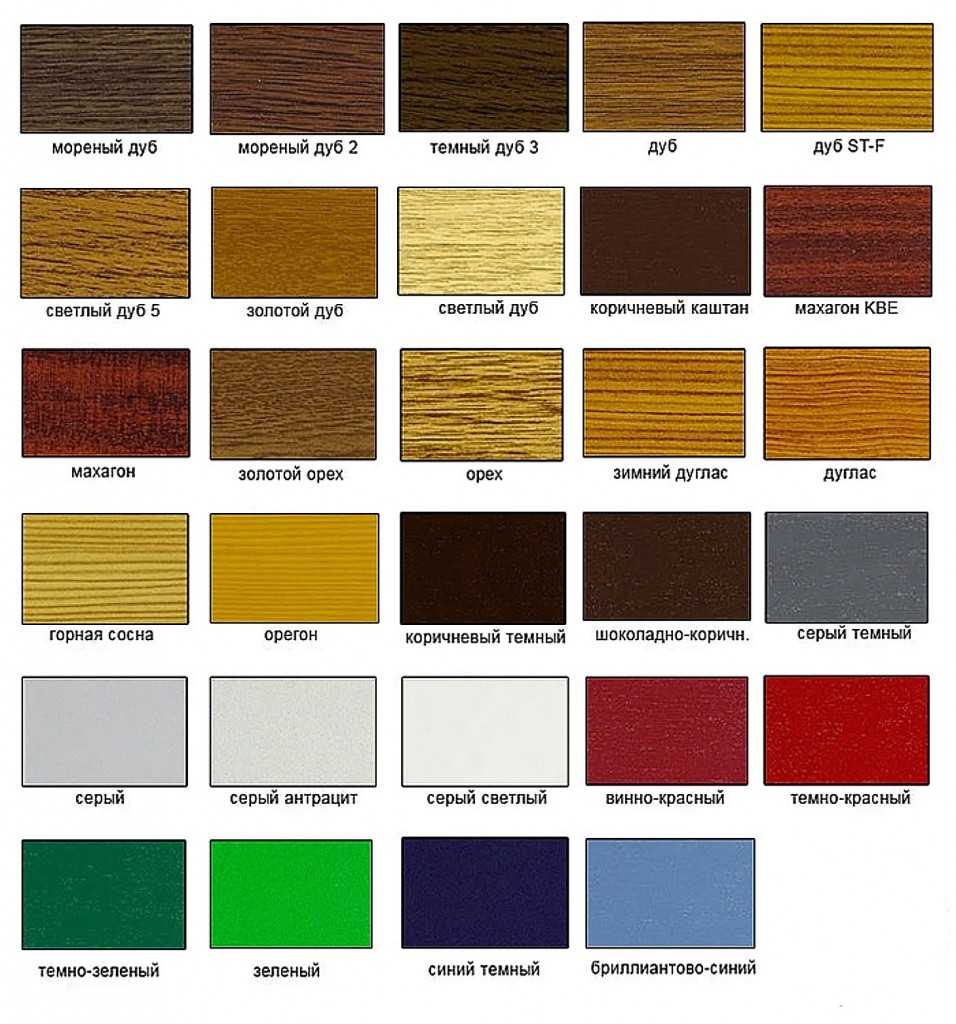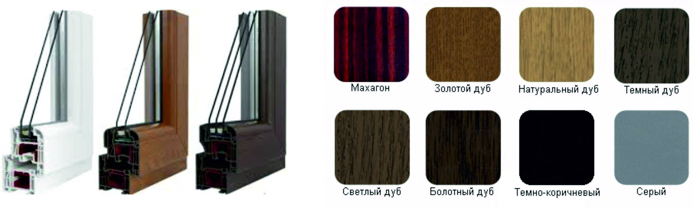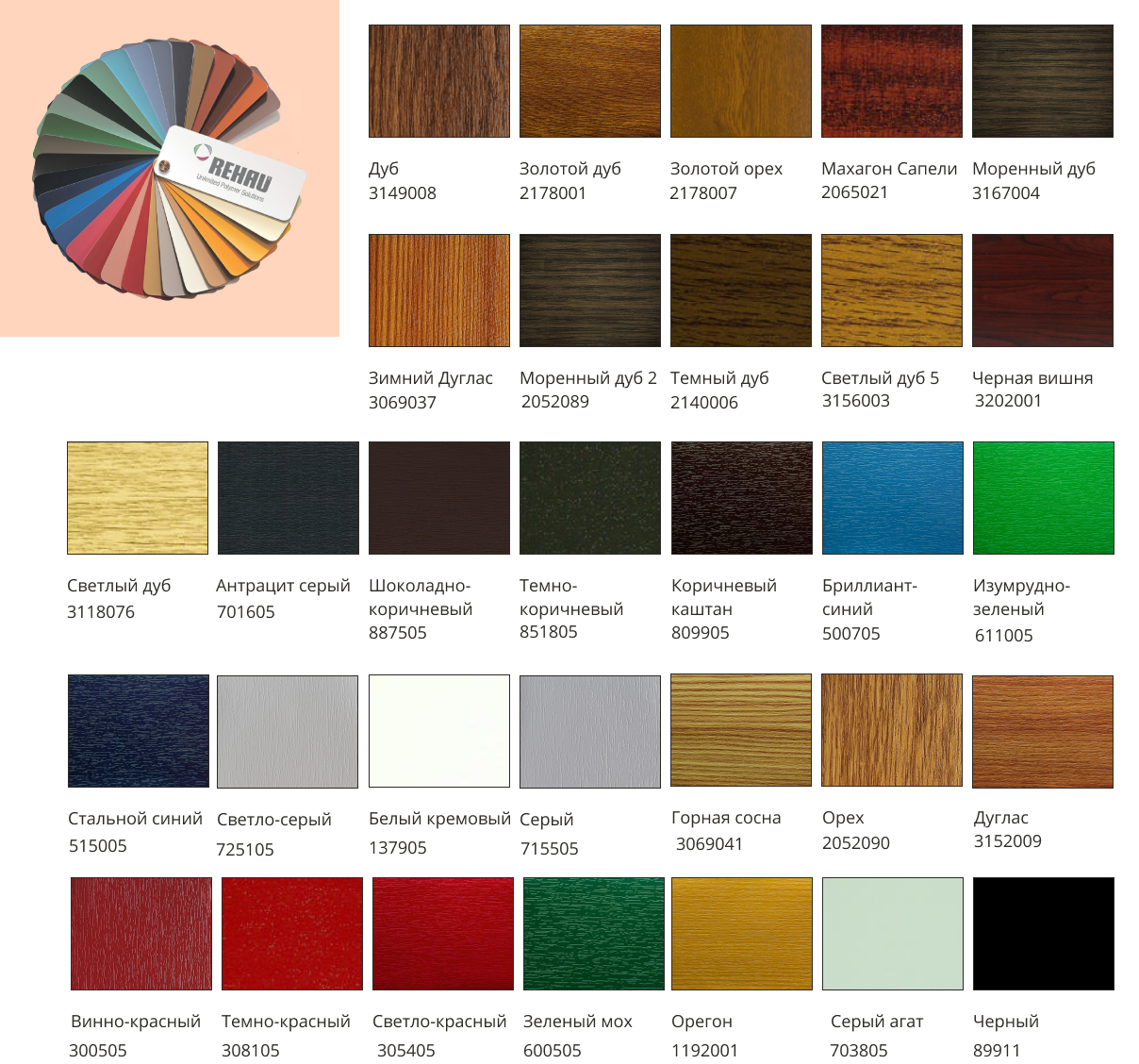 Компания Рехау предлагает несколько цветов (основы) профилей окрашенных «в массе». Чаще всего такие же оттенки используются и другими производителями.
