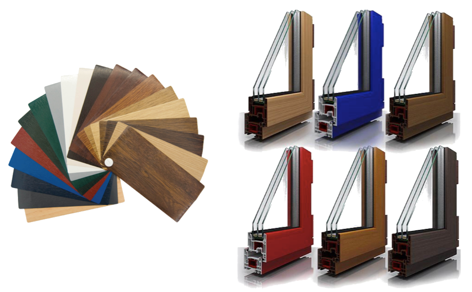 Ламинирование цветом представляет собой процесс, при котором предусмотрено покрытие оконных пластиковых рам и подоконников специальной пленкой. Она имеет полупрозрачный вид и имитацию структуры спиленного дерева и других фактур. Пленка нагревается до температуры 130 градусов. При этом материал выбирается по оттенку с учетом предпочтений хозяина и цветовой палитры, преобладающей в интерьере.