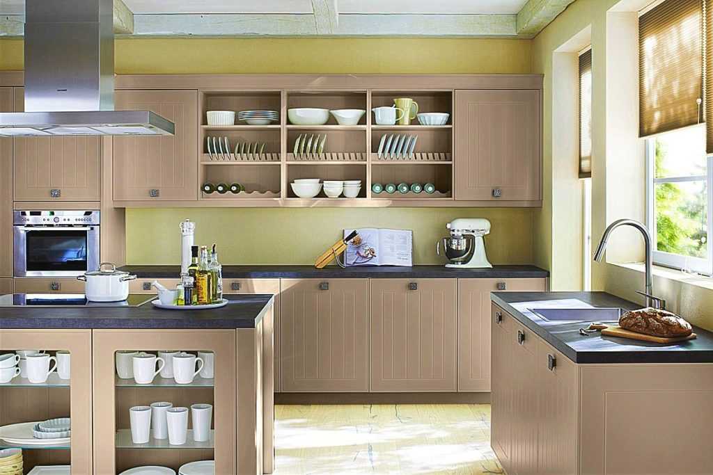 Конструкции из древесины наиболее популярны благодаря большому разнообразию, экологичности и эстетичному внешнему виду. Поскольку на кухне часто бывают перепады влажности, температур, желательно выбирать мебель из древесины (дуб, бук, ольха), обработанной специальными лаками или краской.