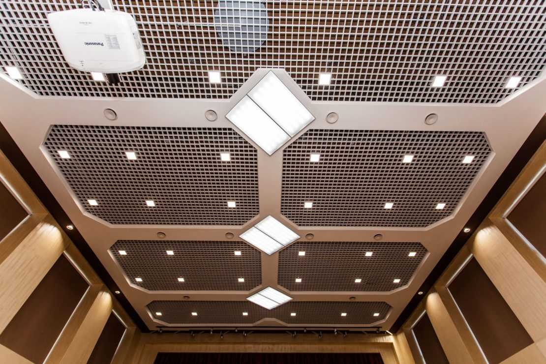 Ячейки-жалюзи выполняются с использованием профилей разной высоты. Объемный подвесной потолок решетка с разной высотой уровней выполняется из U-образных реек всех трех видов, визуальный эффект достигается разностью высоты профиля, а со встроенной подсветкой отделка выглядит особенно красиво.
