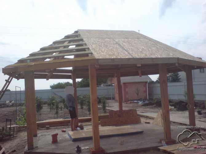 В большинстве случаев О-Эс-Би плита используется для обшивки кровли, поверх которой укладывается мягкая черепица или ондулин. Но иногда её применяет для отделки стен, частично закрывая интерьер беседки от ветра и дождя.