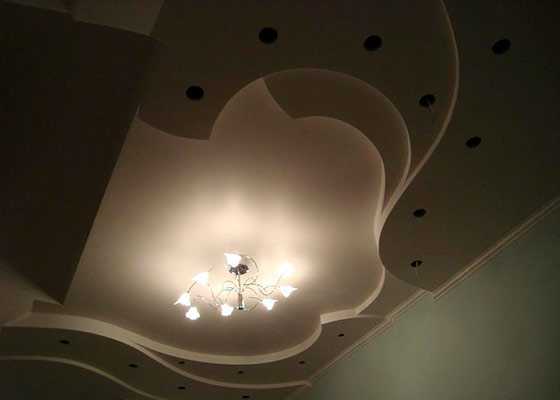 - сграффито позволит хозяевам выделить участки вокруг осветительных приборов или по углам потолка, но представленная техника приемлема только при наличии многоуровневых конструкций;