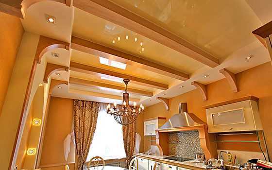 Несмотря ни на что гипоскартон по-прежнему удерживает лидирующие позиции при изготовлении потолков в цивильном строительстве. Ну а что, материальчик недорогой, добротный, да и в плане дизайна нисколечко не стесняет интерьерных мастеров. Бери и твори в своё удовольствие. Главное не забывать что дерево оно живое. Изменится влажность или температура, и балку может куда-то повести, а вместе с ней изменится и геометрия свода.