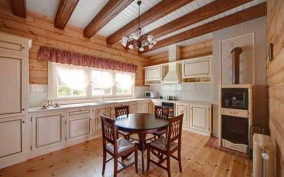Обеденная зона состоит из стола и стульев или лавок. Ее, как правило, размещают возле окна или у открытых стен. Если пища будет готовиться внутри постройки, то жар от очага сильно нагреет помещение. Чтобы находиться в нем было комфортно, лучше ставить стол поближе к открытому воздуху. Если в наличии нет нужного количества стульев, а постоянно переносить их из дома и обратно при приезде гостей, не очень удобно, то используют лавки.