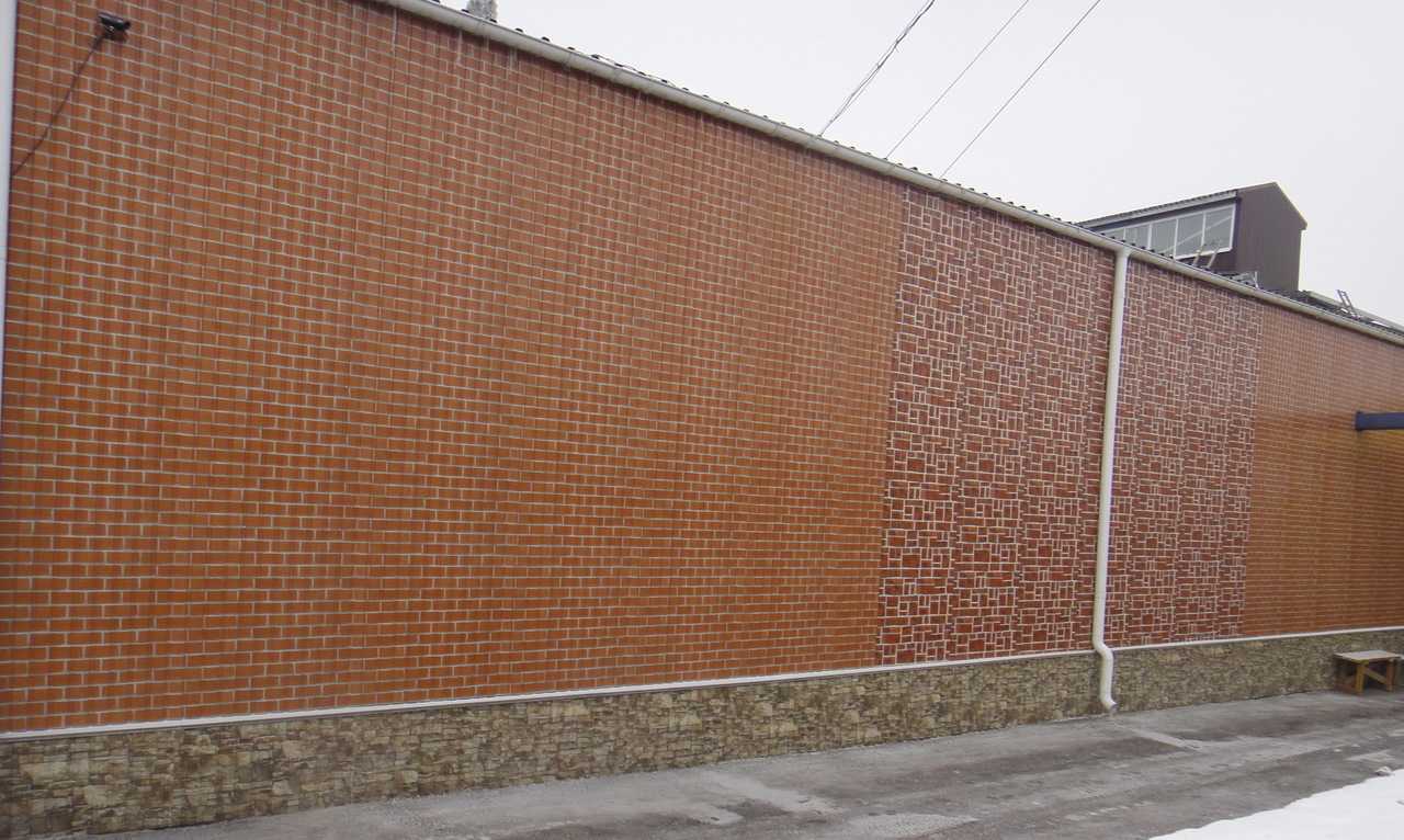 Профлист с нанесением рисунка, имитирующего кирпичную кладку, – очень популярный строительный материал