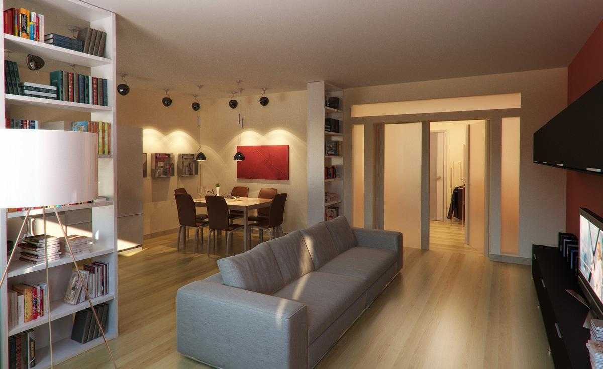 Интерьер проходной гостиной полностью зависит от расположения дверей в другие комнаты, так как проход между ними должен быть свободным