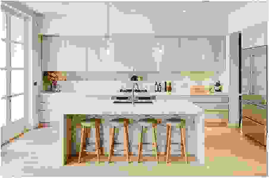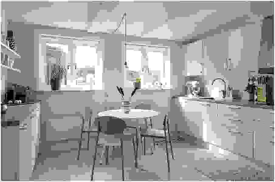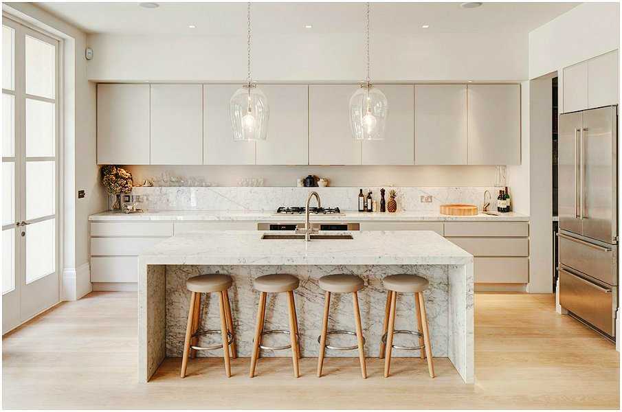 Сочетание бежевого и белого отлично подойдёт для маленькой кухни. В небольших помещениях далеко не всегда уместно использование тёмной отделки и мебели, поэтому светлые интерьеры позволяют удачно обыграть скромную по размерам площадь. Чаще всего отделку кухни делают белой, добавляя к ней бежевый гарнитур, акцентные детали в виде песочного или кремового напольного покрытия или фартука.