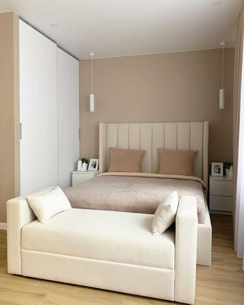 Кремовый цвет — один из наиболее уютных в бежевой палитре. Он отлично сочетается как с современными интерьерами, так и с классическими, добавляя любой спальне тепла и света.