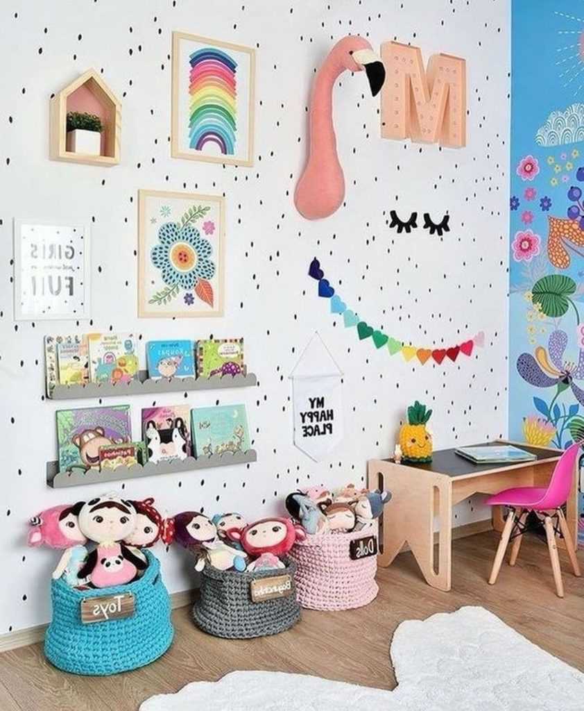 Игрушек и прочих мелки вещей в комнате малыша всегда очень много. Они могут выглядеть крайне неопрятно, если их негде хранить. Используйте для этих целей: красочные ящики, большие хлопковые сумки, которые можно повесить, или сумки на завязках.