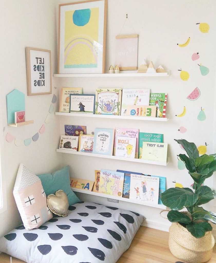 Яркие книги, на красивых и модных книжных полках отлично подходят для модного интерьера детской комнаты 2023