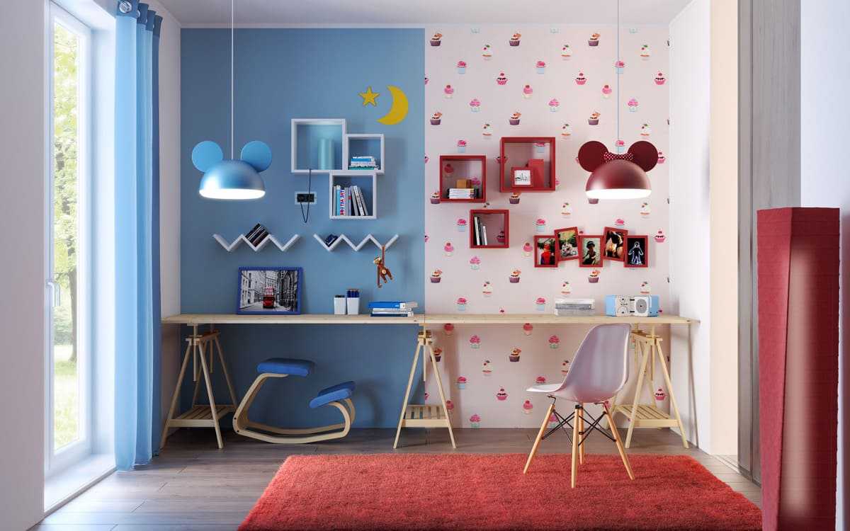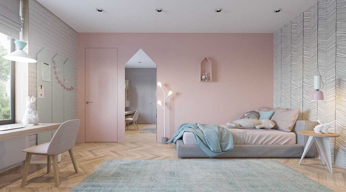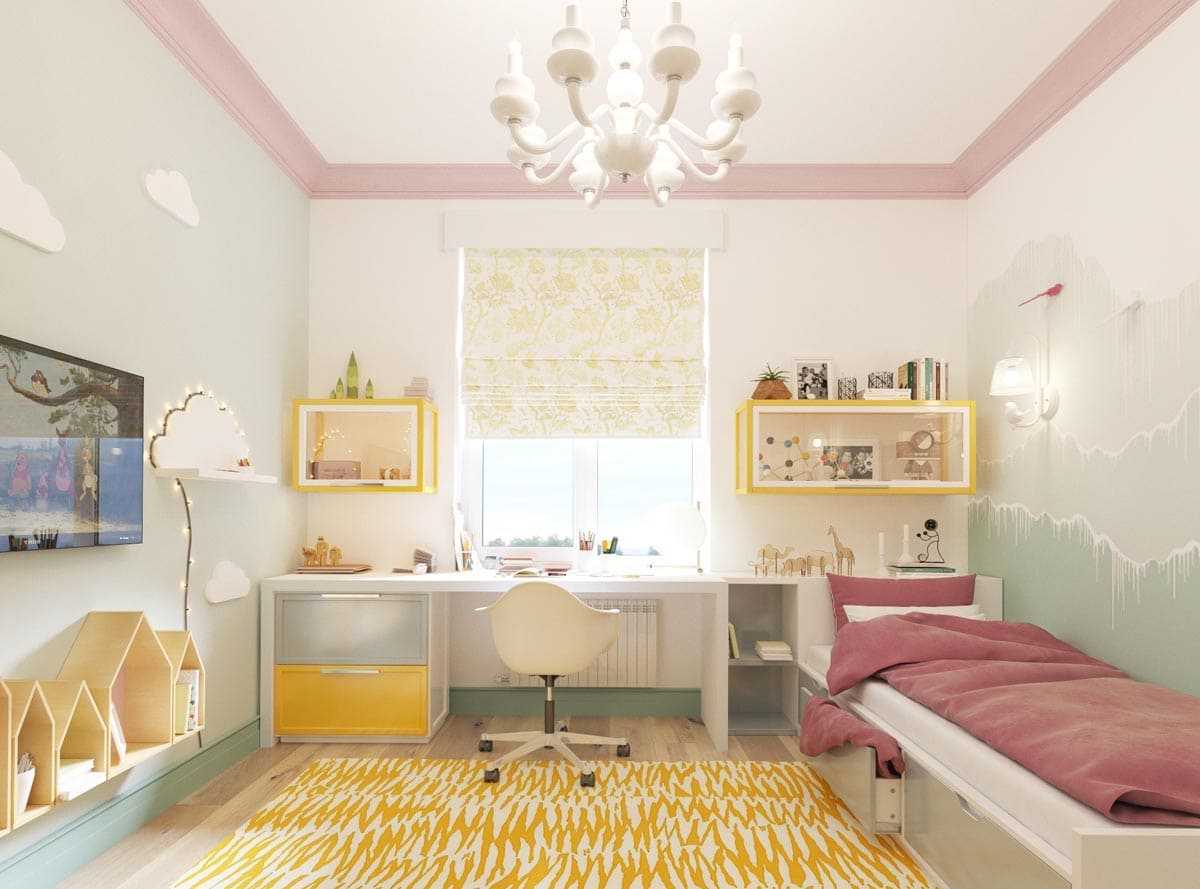 Конечно, красивый дизайн детской комнаты 2023 чаще всего выглядит ярко и сочно, но вы можете выбрать и пастельные тона, таких же голубых или розовых оттенков, чтобы не сильно перегружать комнату цветом.