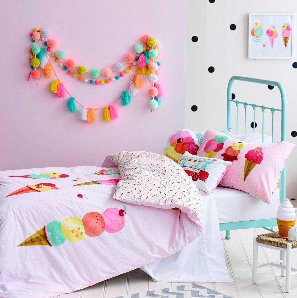 Вы можете создать самые удивительные идеи для малышей просто с правильными постельными принадлежностями. Подумайте о красочных машинках или поездах — для мальчика, сказочных единорогах и принцессах – для девочек. У вас есть более чем достаточно персонажей Диснея, чтобы выбрать идеи декора для детской комнаты.