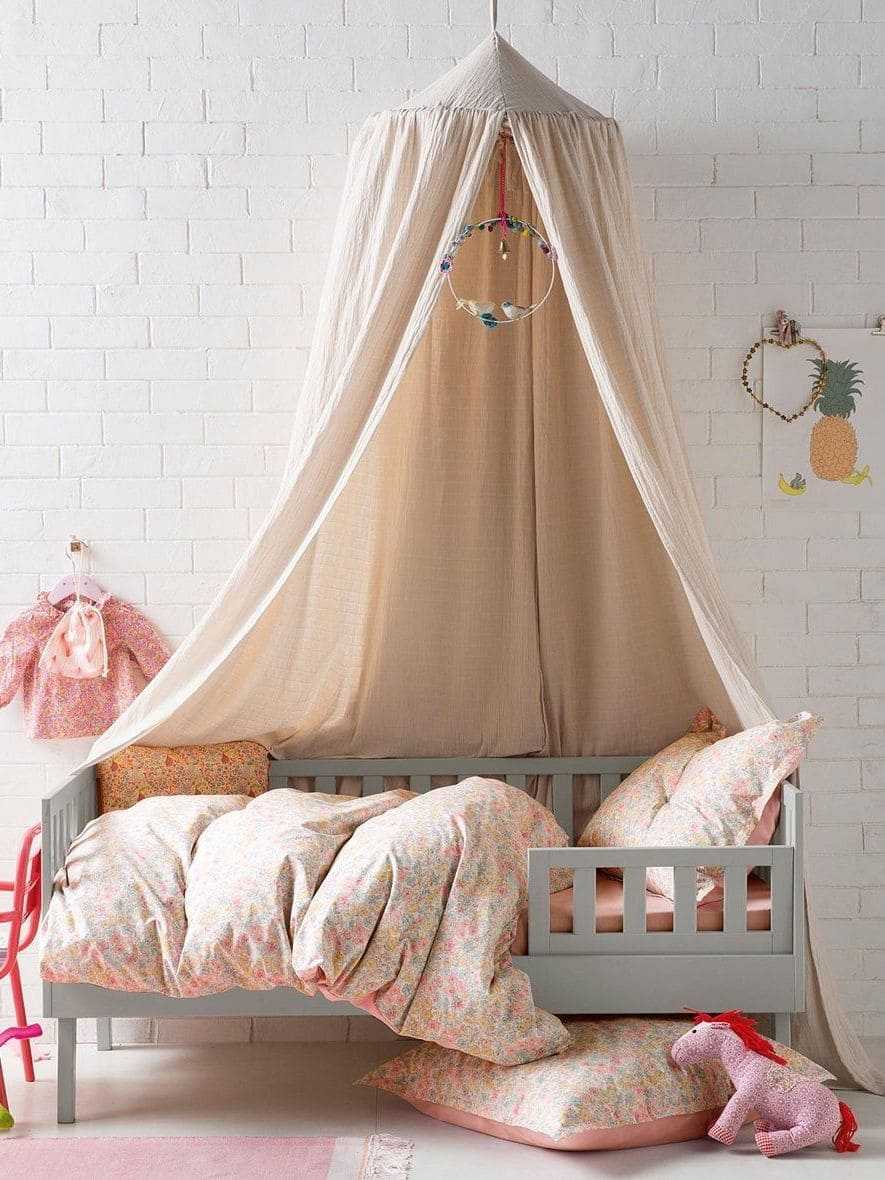 Вашему малышу понравится кровать для «большого ребенка», и вы можете сделать его сон еще более особенным, если повесите балдахин. Вы можете выбрать специальные навесы для комнаты малышей с голубым небом, звездами, радугой или «принцессой Диснея».