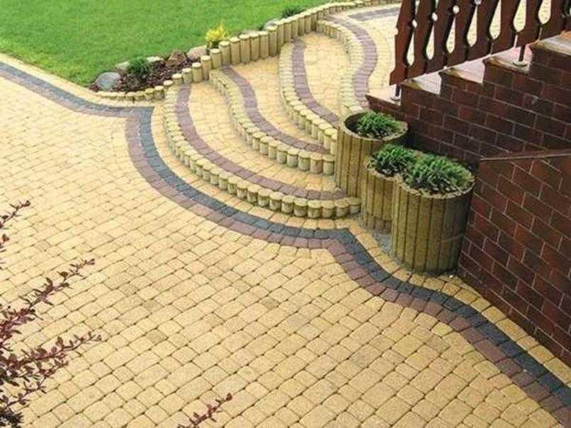 - использование разных оттенков тротуарной плитки, которые полностью сочетаются друг с другом;