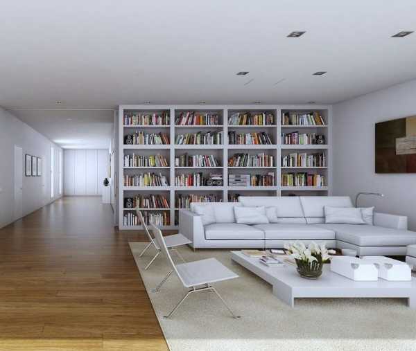 Впрочем, возможен и другой вариант, с белой стеной отлично сочетается конструкция стеллажа темного оттенка, либо светлого цвета. Делая обстановку в помещение довольно эффектной.