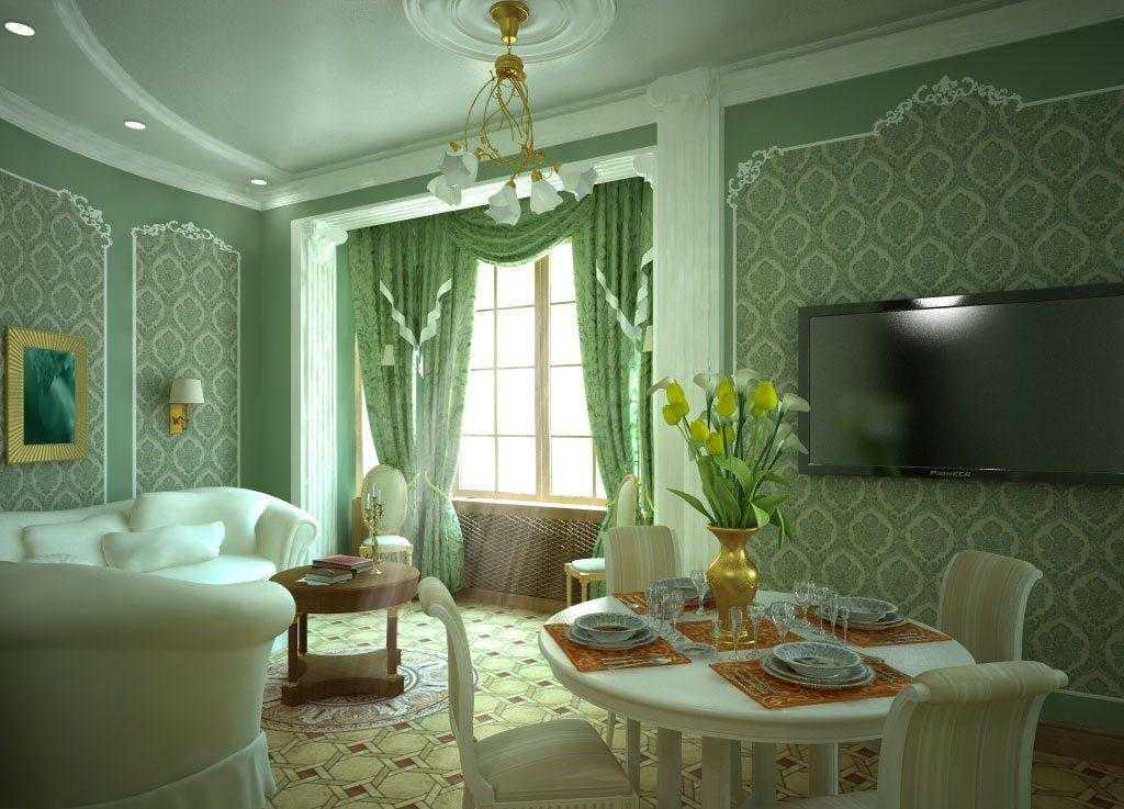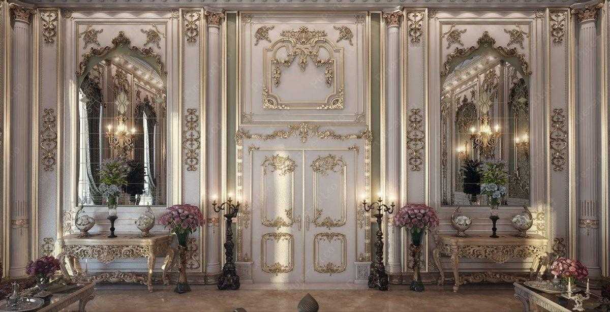 Ампир в интерьере начинается с правильной отделки стен, потолка и пола. Комната должна выглядеть богато и помпезно даже без мебели.