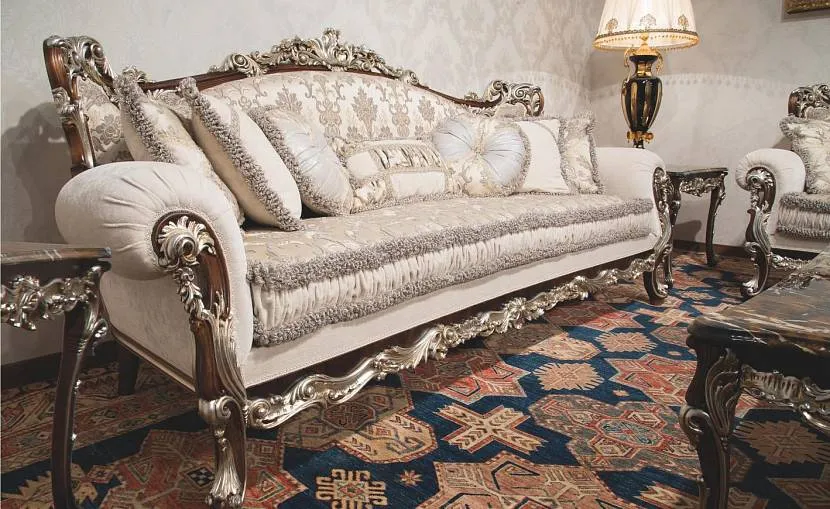 Элементы, украшающие мебель, могут быть не только золотого цвета, серебро ‒ отлично вписывается в императорский стильИсточник www.topdom.ru
