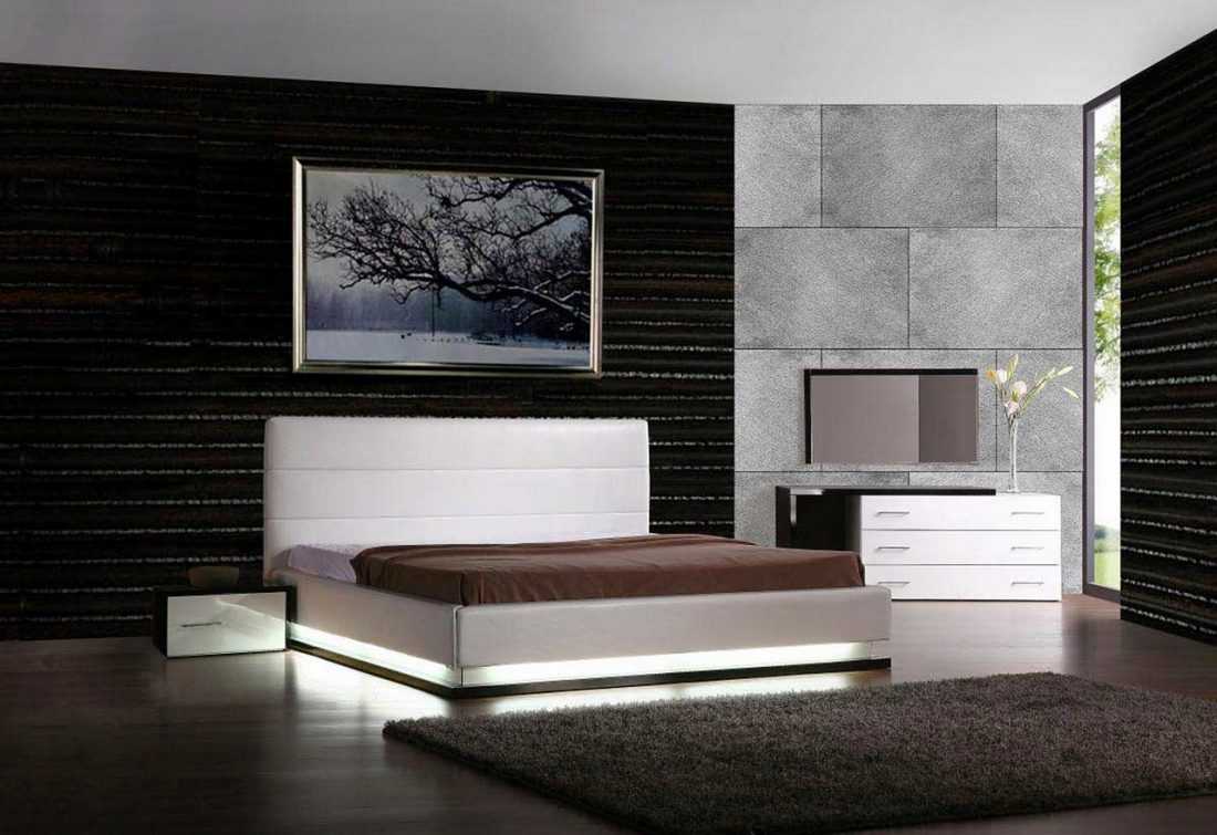 - Многоуровневое освещение. Света в спальной комнате должно быть очень много. Причем используется в основном искусственное освещение, а наличие окон не столь значимо. Эффектно в хай теке смотрятся точечные светильники, которые отражаются в металлических и стеклянных поверхностях. Приветствуется использование декоративной подсветки холодных, неоновых тонов: изумрудный, синий, фиолетовый;