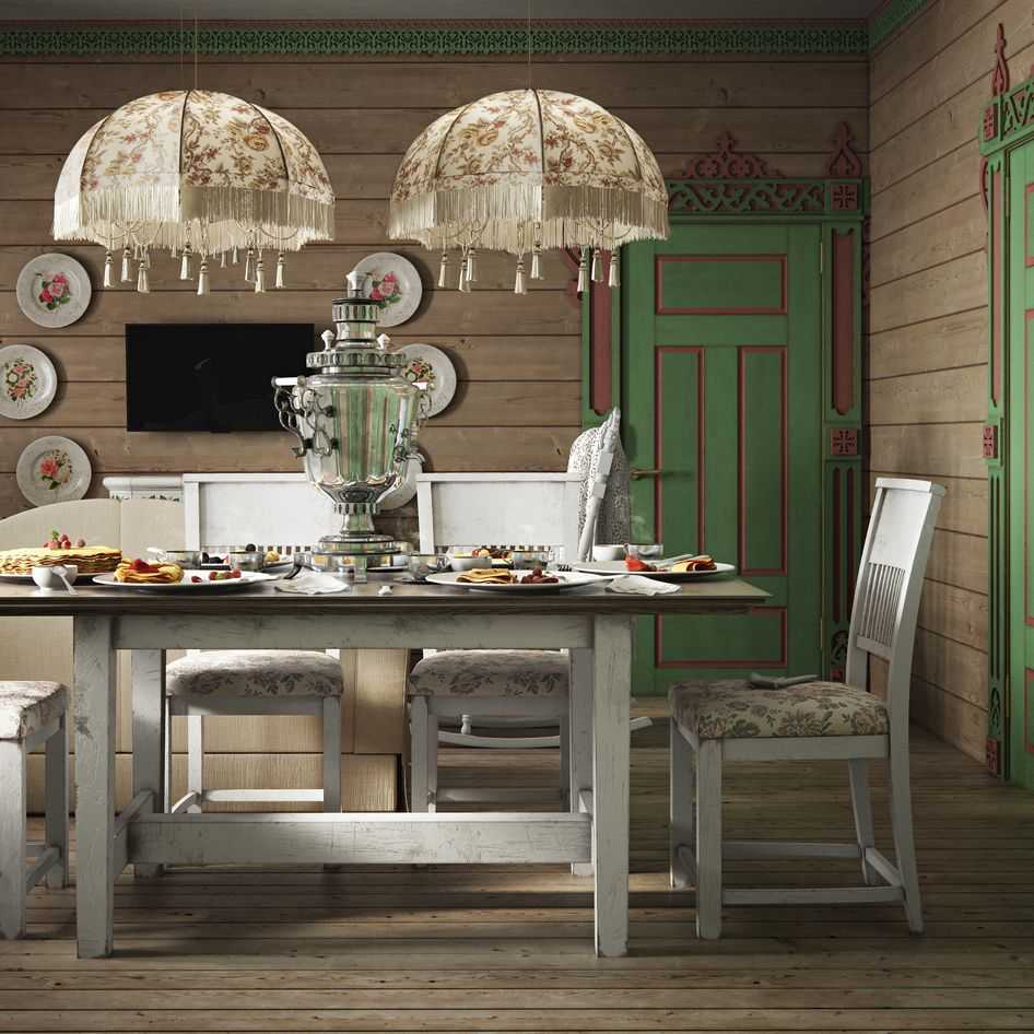 Какой интерьер с русскими нотками вам понравился больше? Другие фото классных интерьеров кухонь в русском стиле можно на нашем сайте здесь.