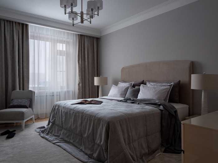 Обилие теплых и холодных оттенков серых штор позволяет создать спокойный и умиротворяющий дизайн в интерьере спальни. В результате самым популярным местом использования пепельных штор является спальня.