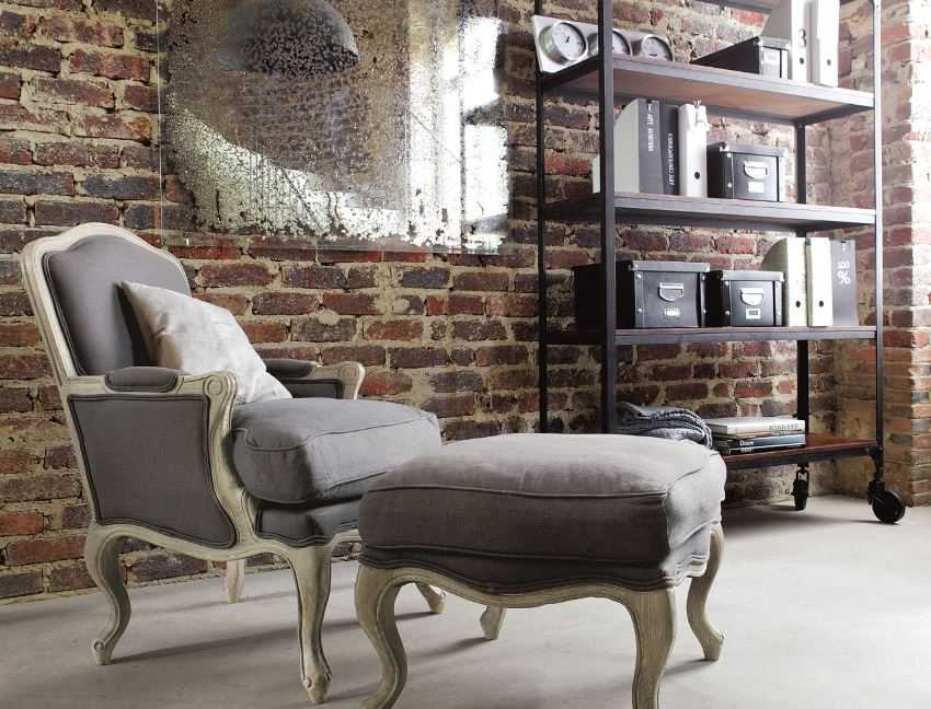 Кирпич для этого стиля должен быть натуральным, грубым. Искусственные потертости и неровная кладка местами создадут впечатление, что стену перекладывали веками. В этом случае материал не нужно красить и еще как-либо декорировать.