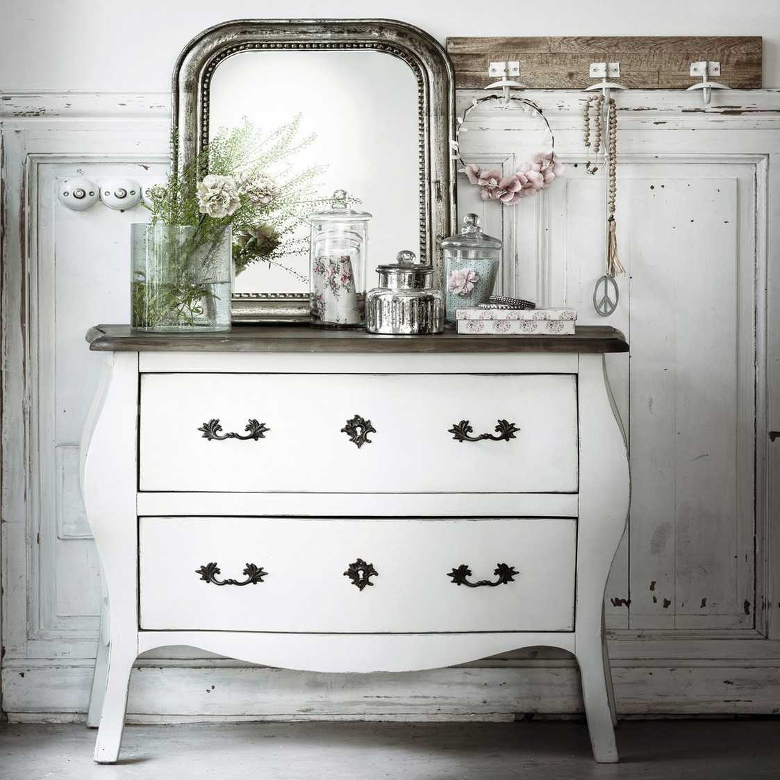 Ценителям антикварных вещей придется по душе комод в старинном стиле с бронзовыми и резными фрагментами, который внесет особый изыск в соответствующий интерьер. Также украсит интерьер, инкрустированный перламутром комод в традициях Марокко.