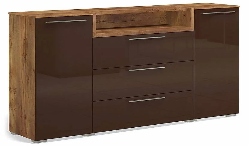 Плиты МДФ обладают улучшенными характеристиками, чем ДСП. Содержание смол здесь ничтожно маленькое, а спектр применения широкий. Комоды из такого сырья более прочные, не зря из МДФ изготавливают фасады шкафов и ящиков, которые больше другого подвержены механическим повреждениям. Основной плюс данного материала – огромное цветовое разнообразие. Глянец черного комода можно получить из плит МДФ, сырье экологически чистое, имеет длительный срок службы.