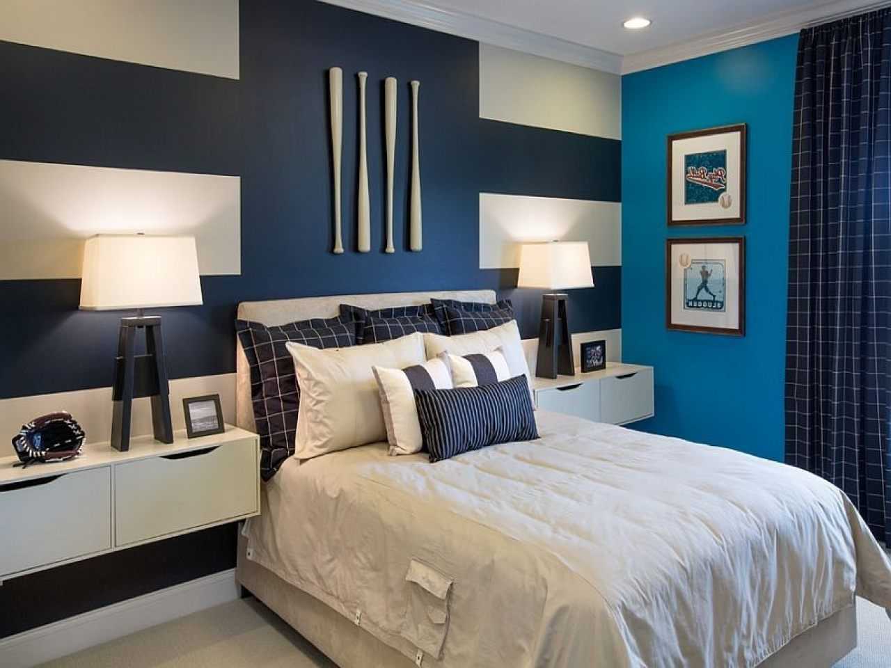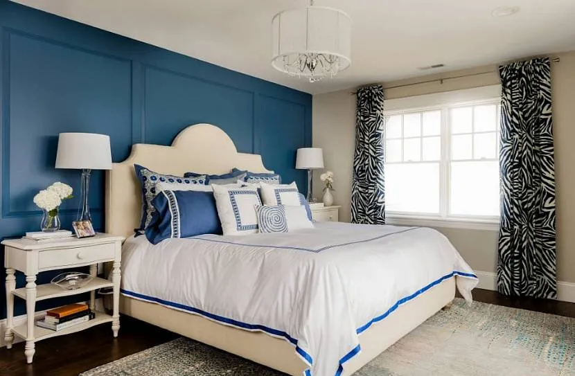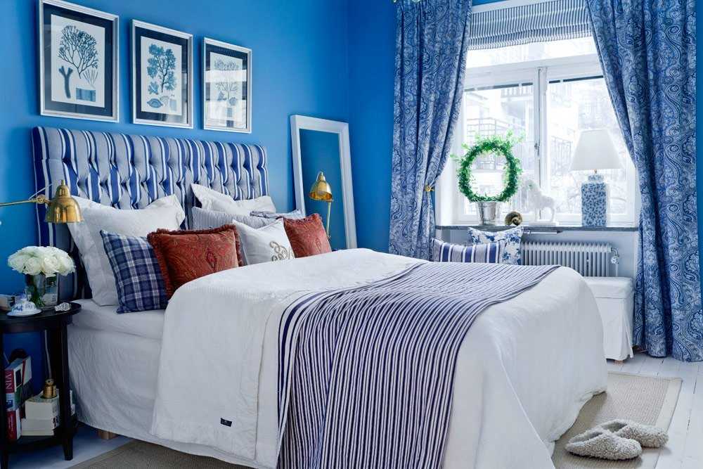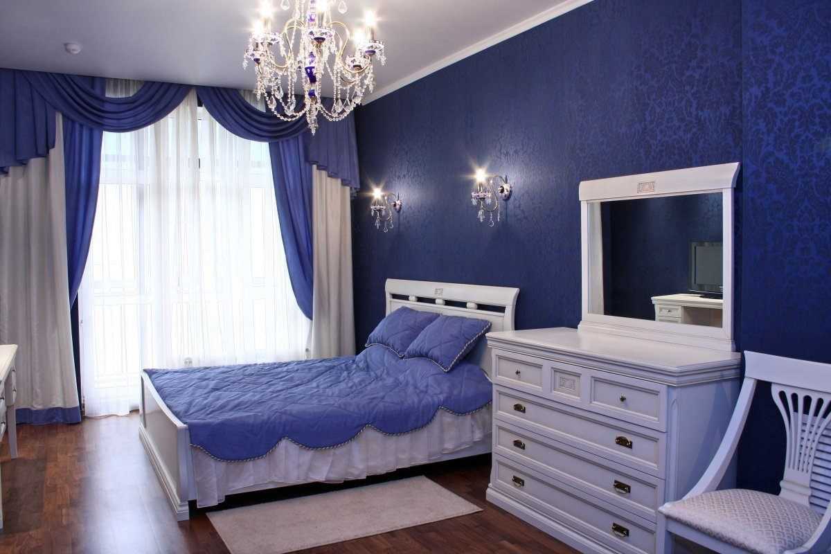 Сине-белые стены в спальнеИсточник uutvdome.ru