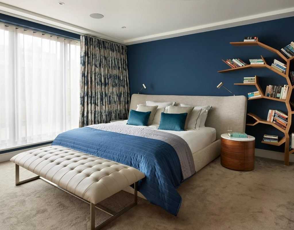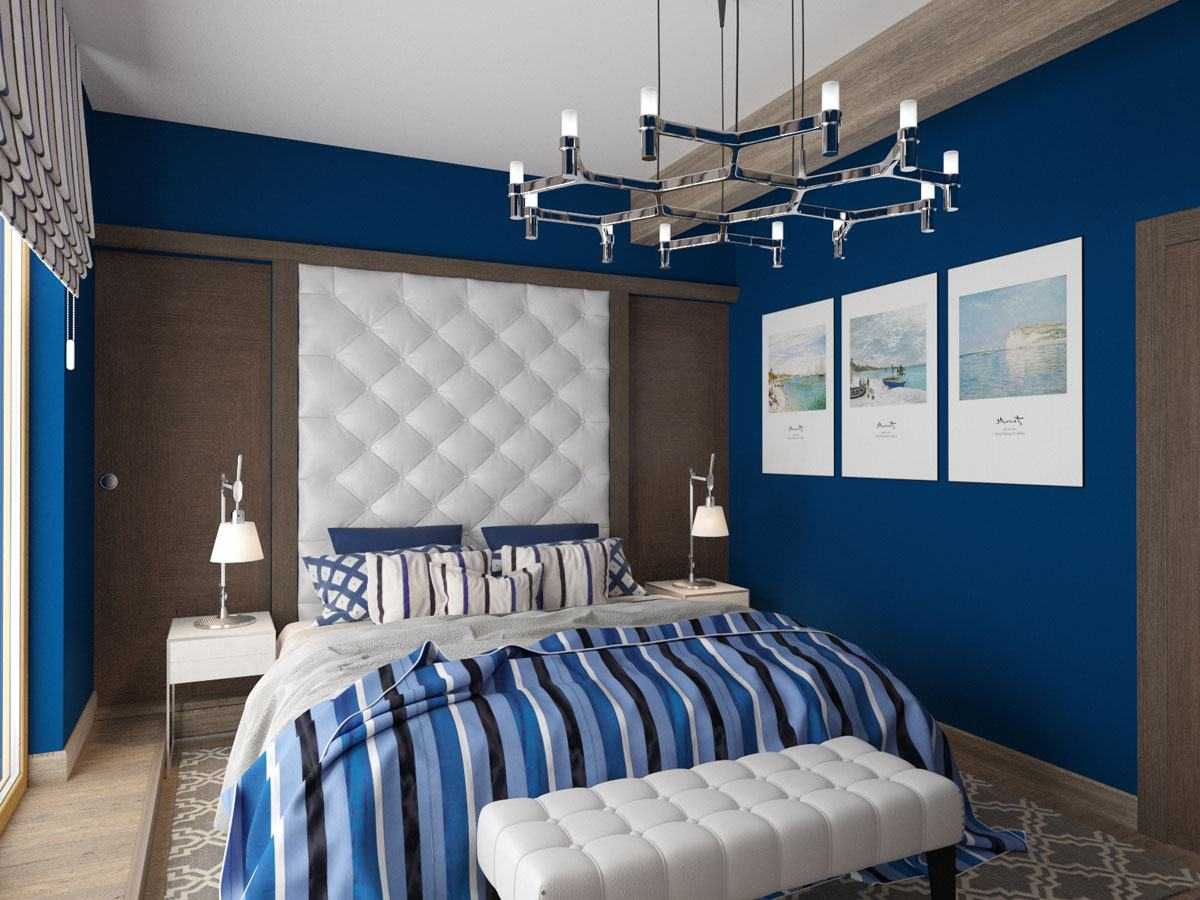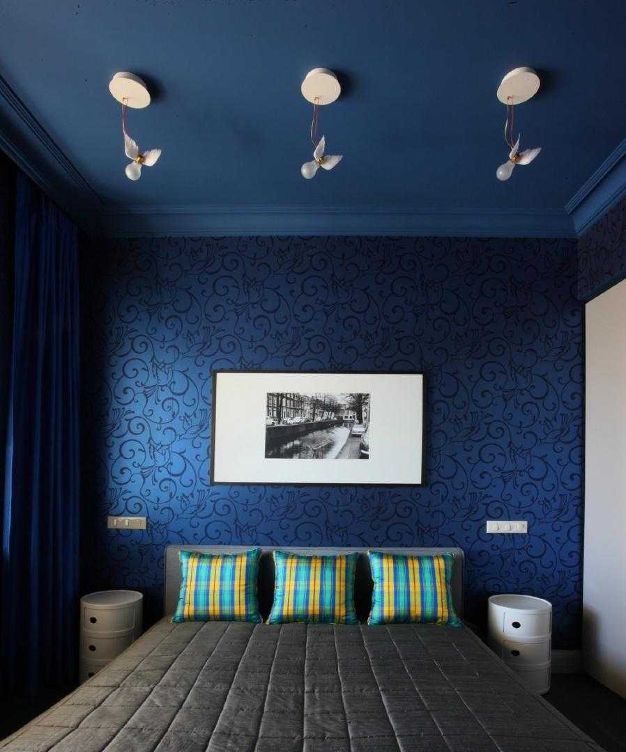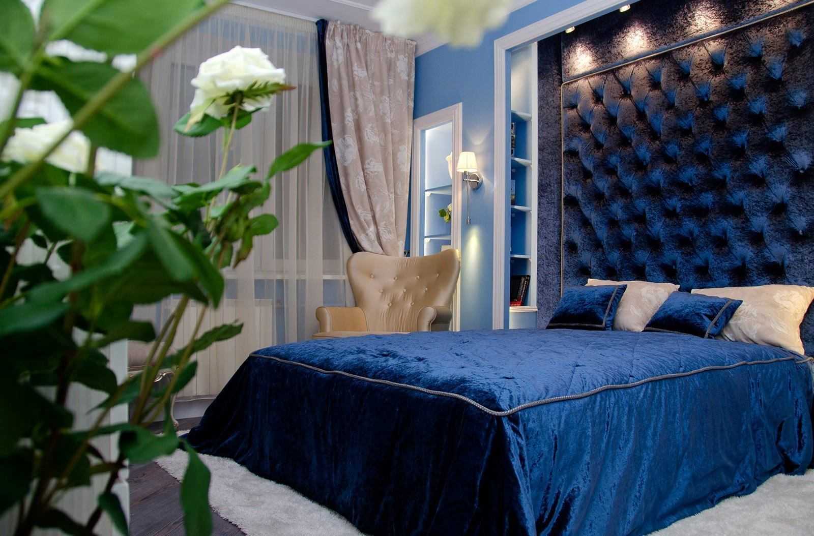 Предлагаем необычные решения дизайнеров на фото синей спальни.
