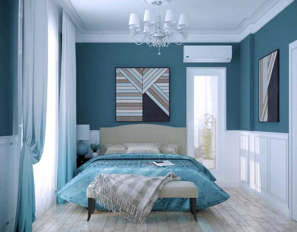 У синего достаточно много оттенков, и все они по-разному смотрятся в интерьере. Особой популярностью пользуется светлая цветовая палитра. Это теплые оттенки голубого, василькового, лазурного тонов. В интерьер спальни прекрасно впишутся также цвет морской волны, небесный и сизый окрас.
