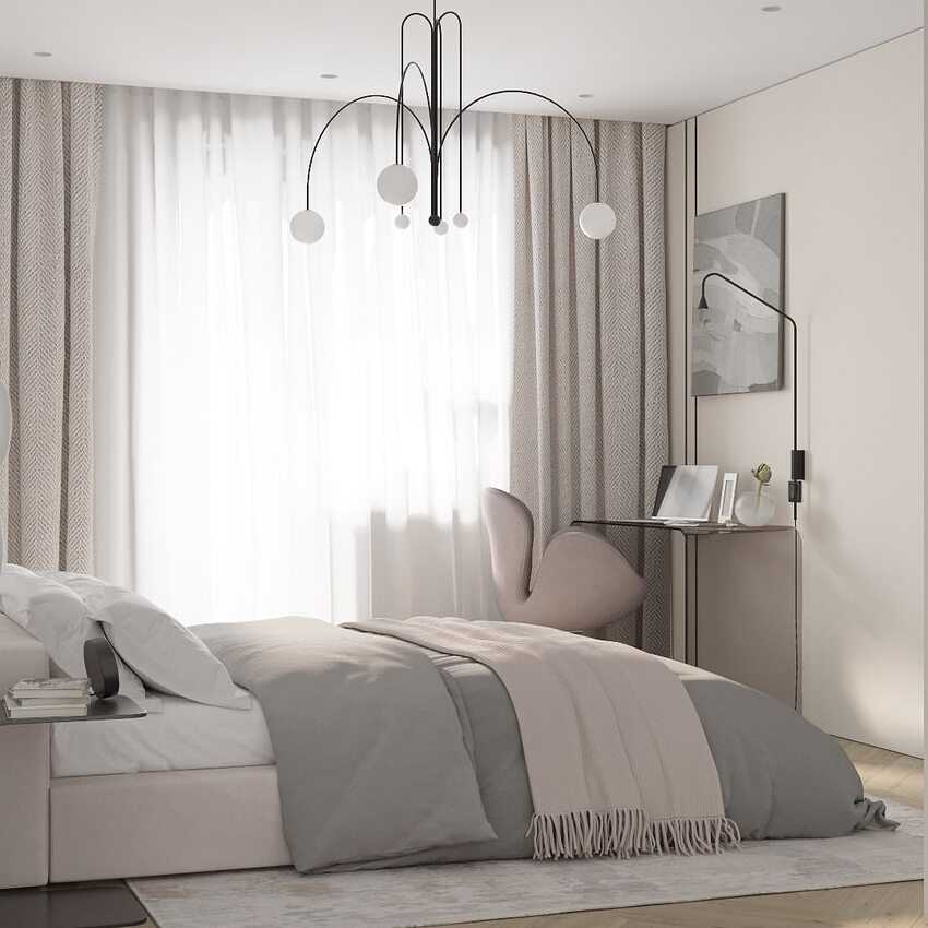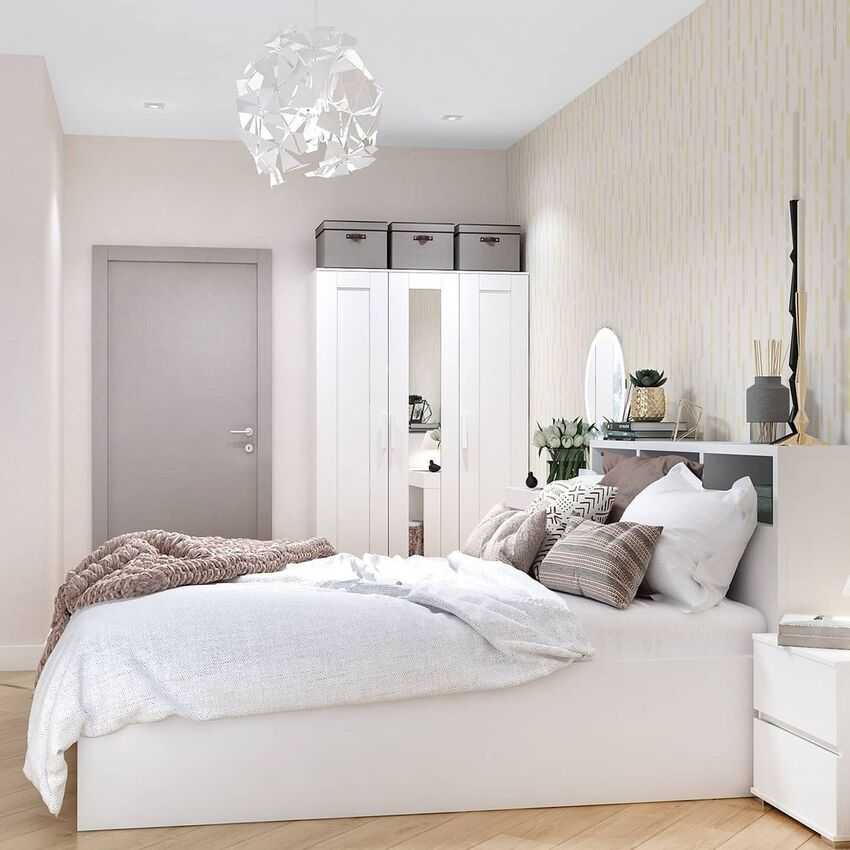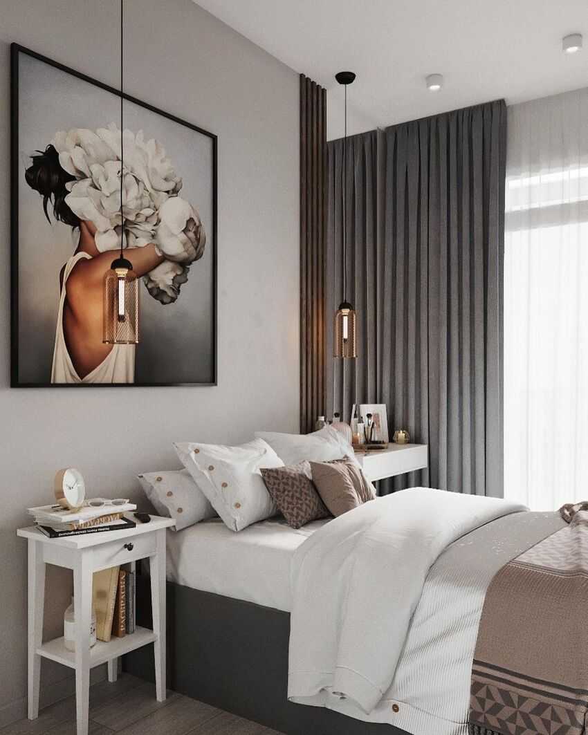 Однако, если спальня небольшая, не стоит перегружать пространство. Вместо чистого серого цвета используйте его более светлые оттенки либо серебристые цвета.
