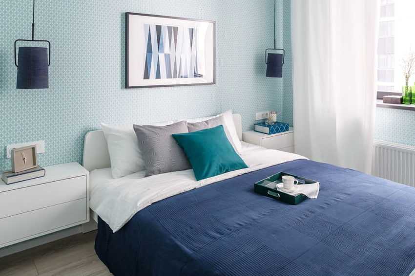 Мороз и солнце в спальне с голубыми обоями – добавим огня!