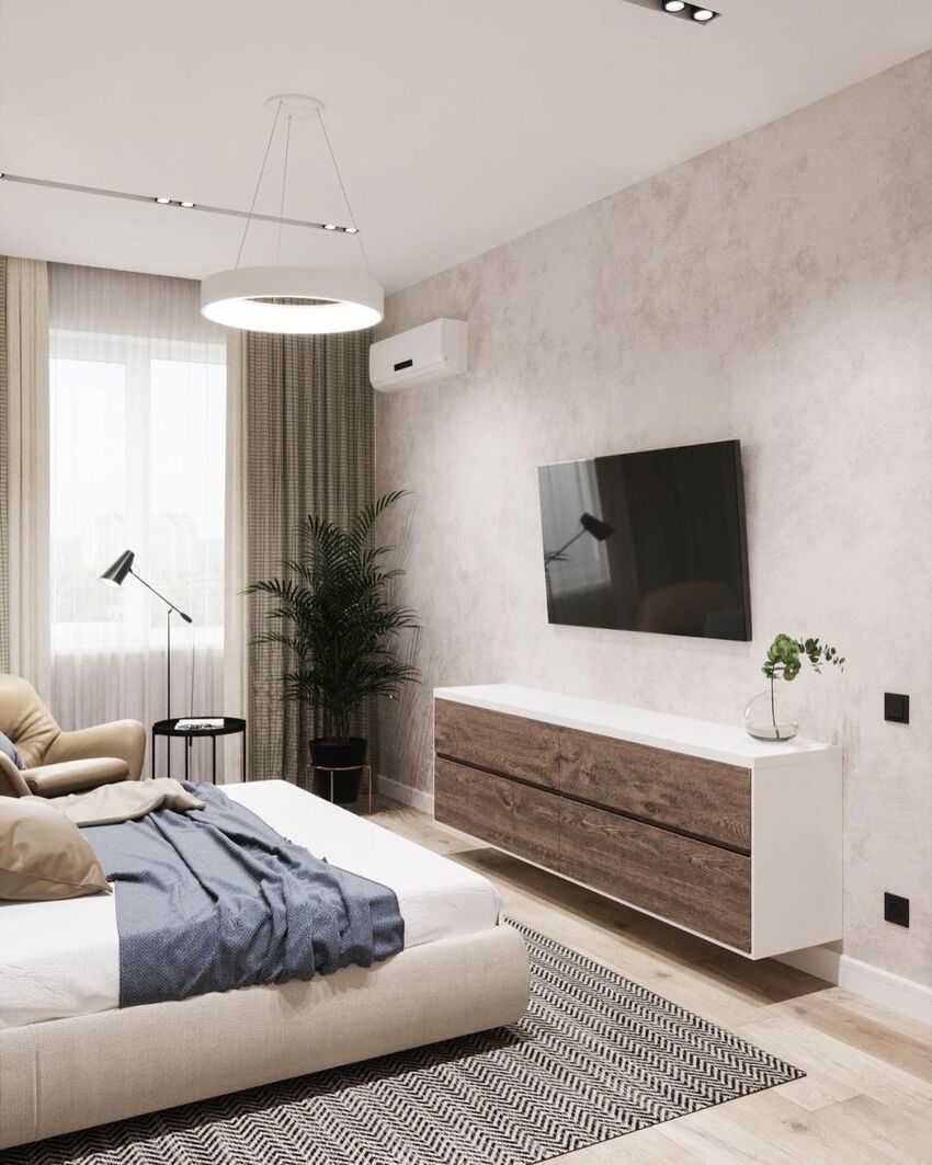 Следует учитывать, что спальня в бежевом цвете и в сочетании цвета беж с другими оттенками должна быть полностью разбавленной. То есть мебель не должна сливаться с полом, потолком, текстильными аксессуарами.