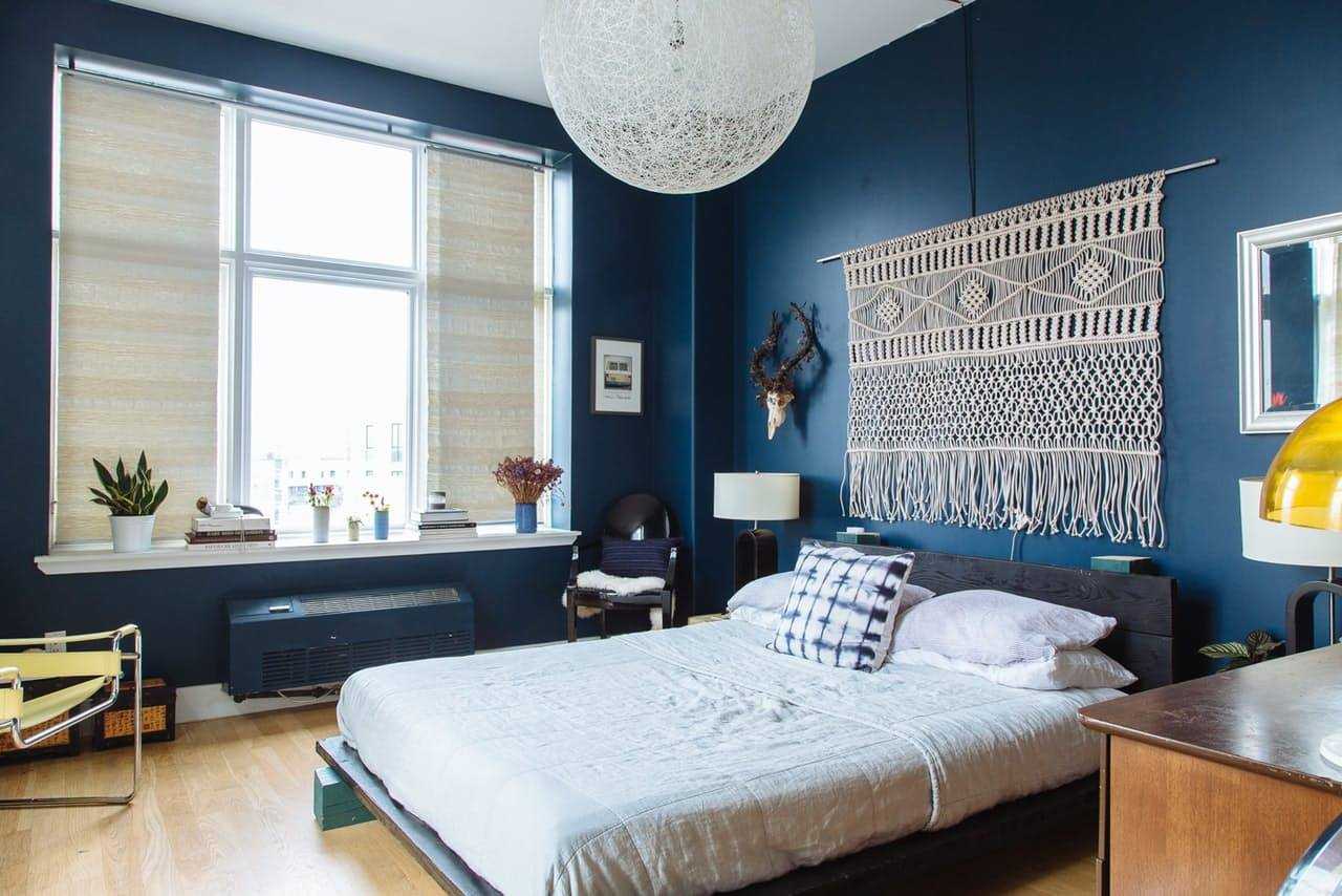 Более темная палитра, сочетающая в себе прохладные роскошные тона, идеально подойдет для отделки спален, выходящих окнами на юг. Очень красиво выглядят джинсовые, кобальтовые, темно-лазурные оттенки. Сравнительная новинка в мире дизайнов интерьера – цвет «Воды пляжа Бонди». Этот необычный оттенок, своеобразный микс между ярко-синим и цветом морской волны, придется по вкусу тем, кто любит оригинальность.