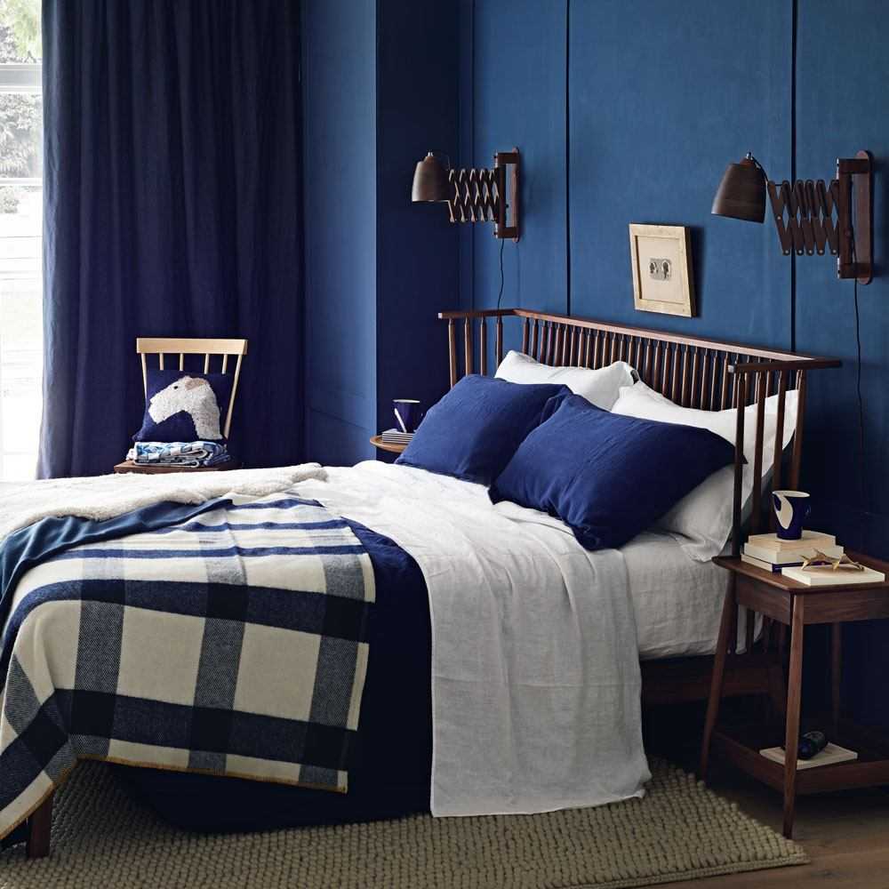 Выбирая синее постельное белье, плед, покрывало, подушки, важно следить за тем, чтобы их оттенок гармонировал с окружающей обстановкой.. Идеальным вариантом для спальни в синих тонах станет белоснежная постель