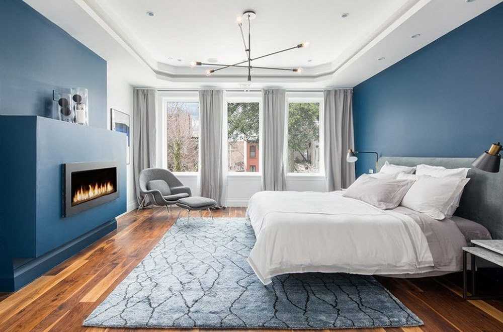 Любого оттенка синие стены в спальне подарят психологический комфорт, эстетику и красоту. О бессоннице, стрессах и неприятностях в таком тоне быстро забывается, организм расслабляется и легче засыпает.
