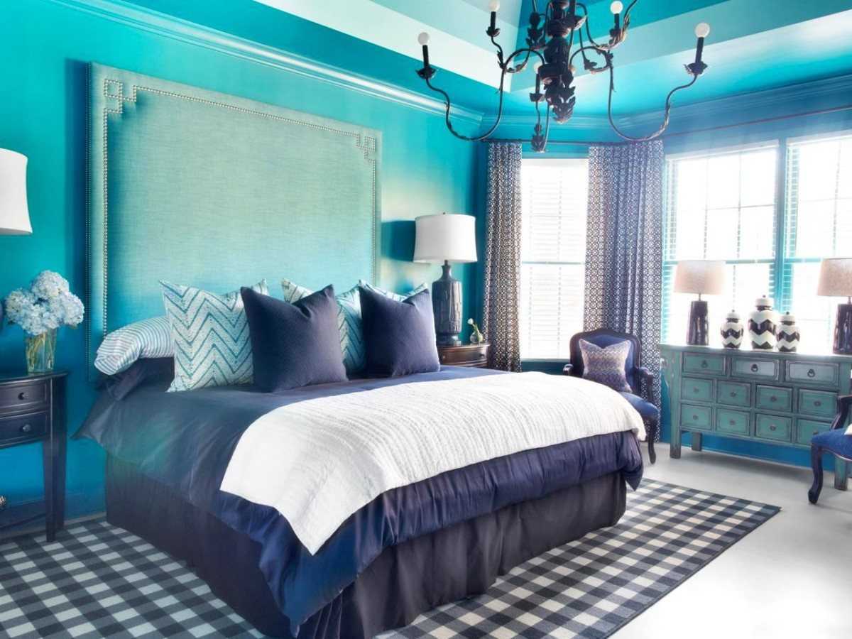 - Бирюзовый цвет, морской волны или мятный способны сделать интерьер синей спальни просто уникальной.