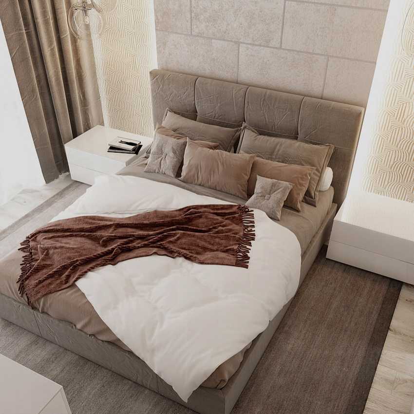 Интерьер спальни в коричнево-бежевых тонах, фото