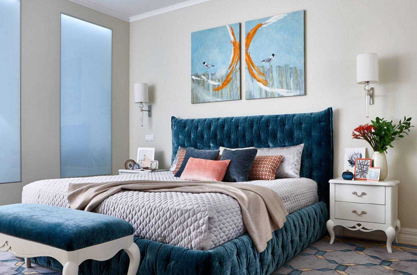 Активные, экспрессивные хозяева могут себе позволить дополнить синий интерьер яркими включениями, что свойственно современным направлениям. Так получаются стильные проекты спален, способные понравиться тем, кто открыт новому и не представляет своей жизни без изменений.