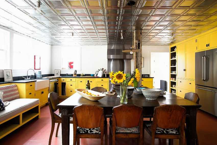 При оформлении кухни веселым солнечным цветом следует принять во внимание важные детали