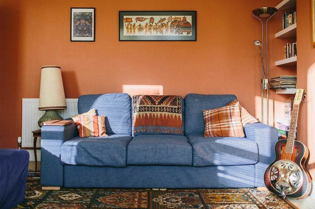 С чем сочетать оранжевый цвет в интерьере? У оранжевого нет холодных оттенков. Он очень теплый, поэтому плохо сочетается с холодными тонами. Например, оранжевый может соседствовать с синим, но только с теплыми его оттенками.