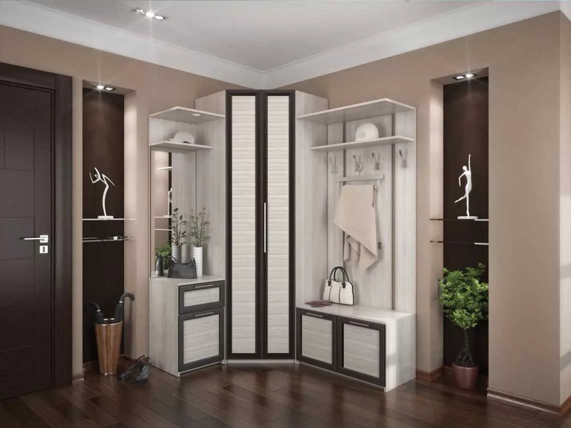 если требуется разработать дизайн интерьера прихожей в квартире, которая имеет квадратную форму, можно расположить шкаф в одном из свободных углов.