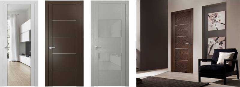 Благодаря нестандартной подаче пользуются успехом двери из коллекций Planum, Linea, Quadro, Avant и Deco, которые прекрасно вписываются в интерьеры в современном стиле. Они имеют обработку гладкими и структурными эмалями, вставки из поперечно расположенного шпона, компланарный короб FlatSystem и скрытые петли.