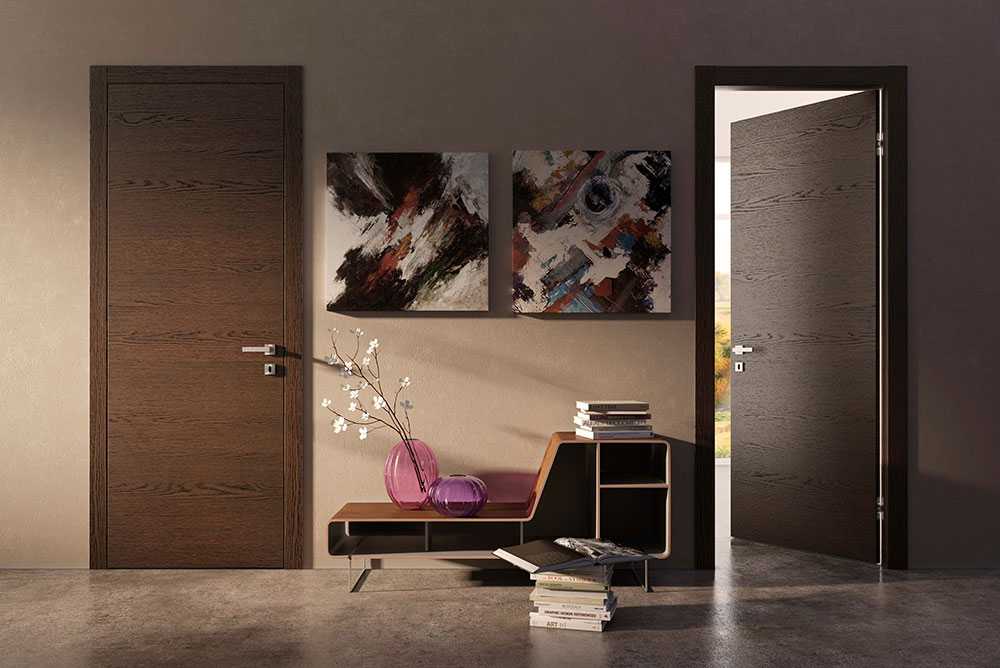 - Деревянные короба. Чаще используют классический, компланарный и обратный вариант конструкции дверей из дерева. При компланарном коробе двери и наличники образуют единую плоскость. Такой вариант представлен в серии Planum.